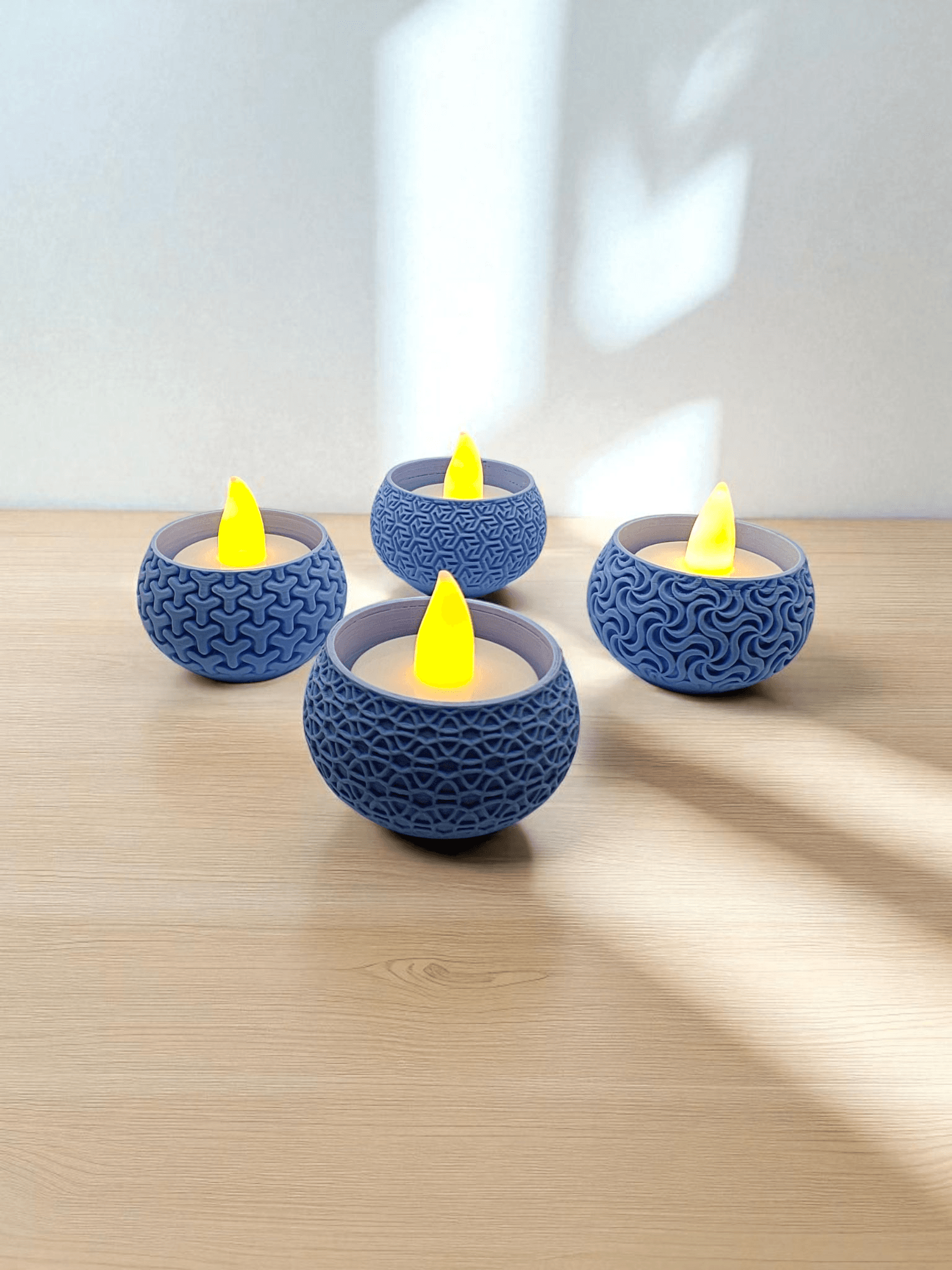 • Material: Made from eco-friendly PLA, these tealight holders are lightweight, durable, and crafted with precision using 3D printing technology.